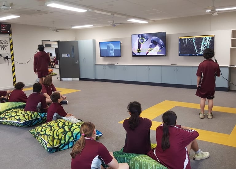 Komanda bendradarbiaudama su rangovais įrengė pilnai funkcionuojančią VR/AR erdvę per 10 savaičių. Projektas apėmė 10 VR komplektų, valdymo konsolę ir papildytos realybės interaktyvų projektorių, taip pat mokytojų apmokymus ir saugos protokolus. Biudžetas siekė apie 42 tūkst. eurų, įranga CE sertifikuota.